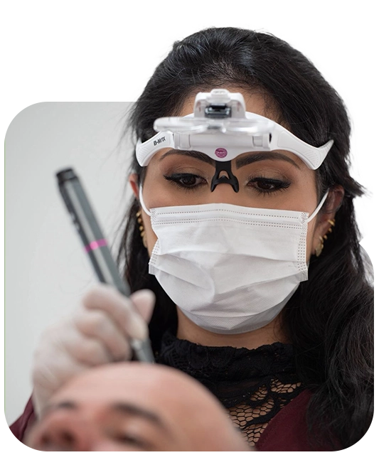 Cada procedimento é planejado, respeitando a linha natural de crescimento e criando transições graduais de densidade. Enfatizamos a disposição harmônica dos folículos, em conformidade com o fluxo natural de crescimento capilar. Isso assegura resultados discretos e esteticamente equilibrados.